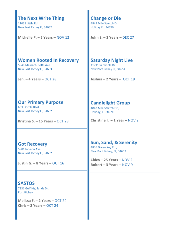 H&I Meets at 2:00 PM, the 1st Sunday of the Month at Edna Clubhouse